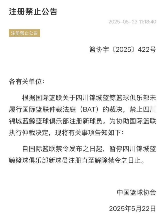 作为昔日的CBA总冠军,四川男篮这几年因为经营不善,已经屡次曝出欠薪丑闻。日前中国篮协发布公告,四川男篮因未履行国际篮联仲裁法庭裁决,被禁止注册新球员,直至解除禁令之日止。据相关消息源透露,此前四川外援高登的赛季工资并未被完整支付,后者上诉国际篮联。而此前乔丹克劳福德同样在个人社媒爆料四川队拖欠自己工资。